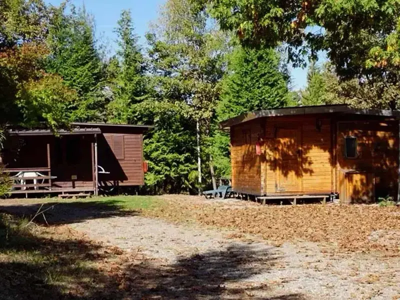Caravan with wooden chalet and bathroom